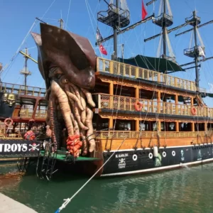 An all-day cruise on the largest pirate ship awaits you. The ship lines the coast of Alanya in the Mediterranean. During the cruise, you can enjoy views of the historic fortress, the most famous Turkish beach Cleopatra or the famous caves of Alanya. During the cruise, there will be stops that you will need when using the purchase.